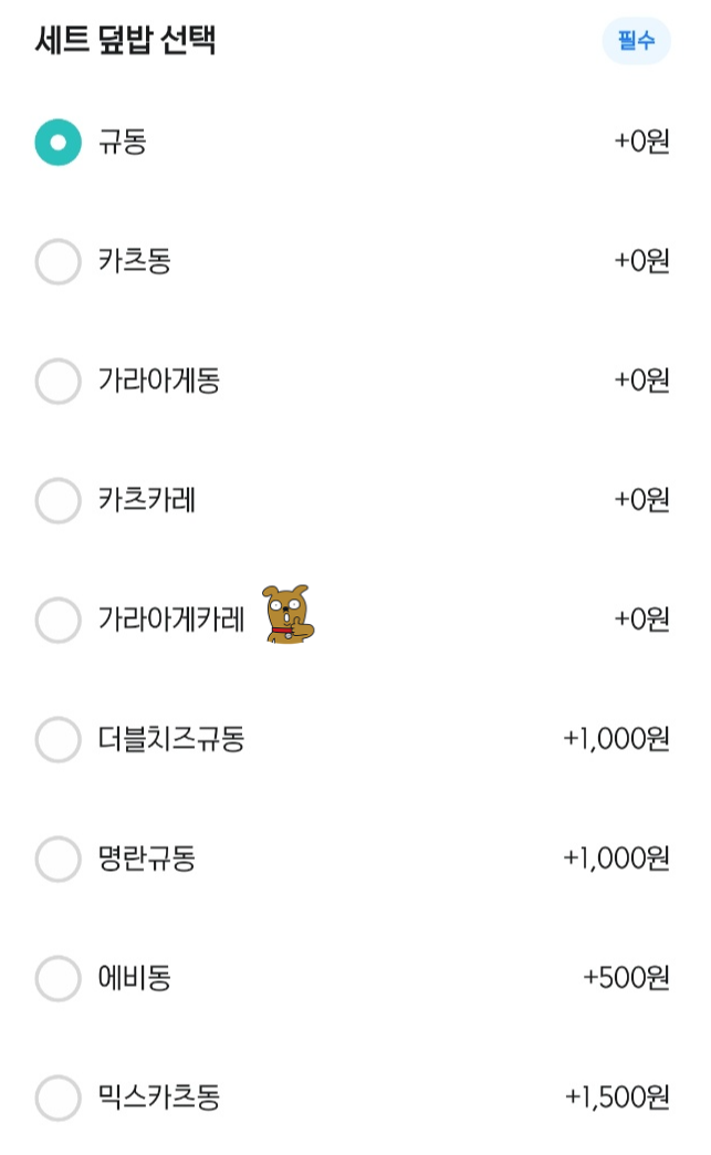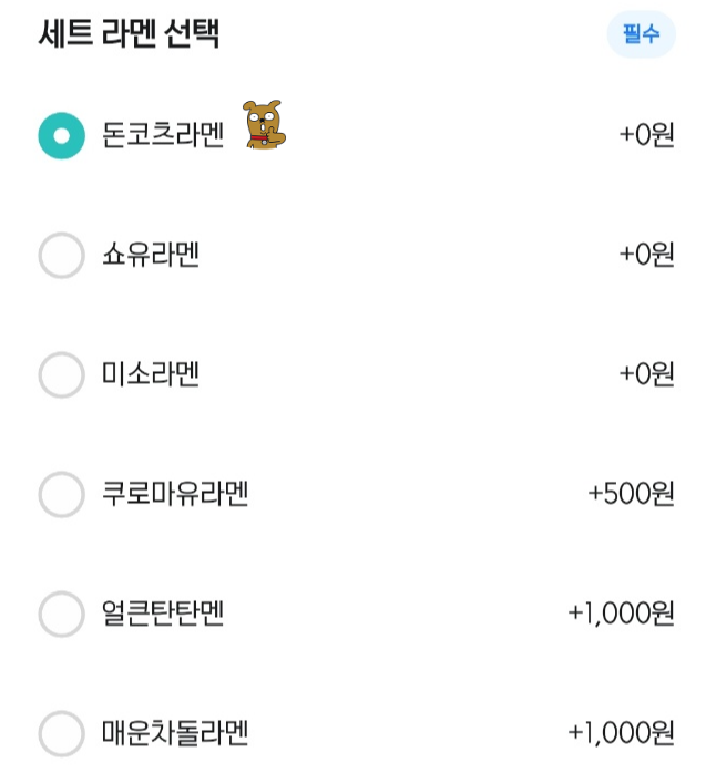 라멘은 돈코츠라멘으로 선택, 덮밥은 가라아게카레로 선택, 사이드메뉴는 등심카츠(110g) 2장 +소스로 선택했습니다.
